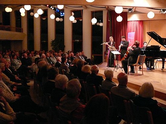 Das Konzert: Ein großer Erfolg!Man darf diesen Abend wohl sicher als Höhepunkt der diesjährigen Veranstaltungen im Haus der Begegnung bezeichnen. Vier erstklassige Musiker, Guido Schliefen, Cello, Ralph Manno, Klarinette, Anette Maiburg, Flöte, und Henri Sigfridsson, Klavier, trugen zum Abschluß des 8.Rhein-Sieg-Kammermusikfestivals am vergangenen Dienstag Werke von Debussy, Mendelssohn-Bartholdy, Schumann und Brahms vor. Der Martinsbasar ist schon bald - bitte Werbung machen!Die Vorweihnachtszeit beginnt auf dem Eichhof mit dem Martinsbasar, diesmal am Samstag, 17. November, von 12 bis 17 Uhr. Nicht nur die schöne Stimmung sorgt dafür, dass Freunde des Eichhofs immer wieder gerne zu diesem Anlaß ins Bröltal kommen - natürlich auch um schon mal die ersten Geschenke für die Lieben zu besorgen. Newsletter: Beiträge erwünschtDer Eichhof-Newsletter soll über aktuelle und künftige Aktivitäten auf dem Eichhof informieren - und je mehr mitmachen, desto häufiger und umfangreicher kann ein solcher Newsletter erscheinen. Wer selber einen Beitrag verfasst hat, schicke ihn bitte an newsletter at eichhof. Bei dieser Gelegenheit: Es wurde schon mehrfach der Wunsch geäußert, den Newsletter auch jenen Mitgliedern zugänglich zu machen, die keine eMail-Adresse haben. Der Versand via Fax oder Brief würde derzeit zu einem erheblichen Mehraufwand führen. Deshalb entstand die Idee von "Patenschaften". Wenn viele Empfänger den Newsletter regelmäßig jeweils nur an ein oder zwei MItglieder per Fax oder persönlich weiterleiten, können wir die Informationen sicherlich allen zugänglich machen. Hören Sie sich doch bitte einfach mal um, wer dafür in Frage kommt. Newsletter abonnierenWenn Sie von jemandem wissen, der auch den Eichhof-Newsletter abonnieren möchte: Eine eMail mit Vornamen und Nachnamen an die Email-Adresse newsletter at eichhof punkt org genügt. Schön wäre es, wenn viele Menschen Informationen, Anekdoten, Termine oder Fotos beisteuern - bitte an dieselbe Adresse schreiben. Termine