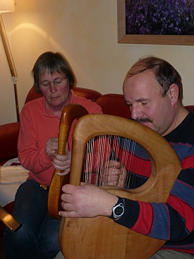 Foto links: Christina Linde (l.) mit der Sara Ulm. Rechts: Heinke Springsfeld und Ralf Bußberg spielten auf der Leier.