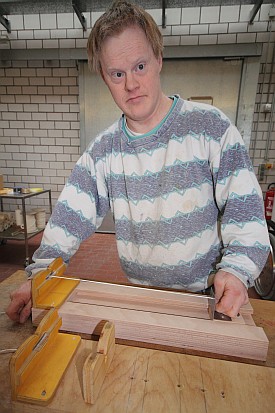 Wir sind sehr, sehr froh, über die neuen Schneidebretter, die die Schreiner für uns gebaut haben. Mit den alten Schneidebrettern war es eine Katastrophe, weil das Klötzchen immer abgebrochen ist. Dadurch wusste keiner mehr, an welcher Stelle die Dochte genau hinein kamen. Deswegen hat Herr Schumacher für uns eine ganz neue Schiene entwickelt. Und das Metall oben an der Schiene, wo der Docht hinein kommt, haben die Metaller beigesteuert. Seitdem klappt es mit dem Dochteschneiden viel besser. Wir möchten uns dafür nochmals ganz herzlich bedanken!!