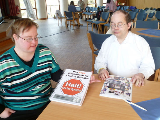 Am 22. März 2011 war auf dem Eichhof eine Tagung zu dem Thema „Leichte Sprache“. Zwei Männer waren vom Arbeitskreis „Behinderten-Arbeit im Rhein-Sieg-Kreis“ eingeladen. Sie haben etwas zur leichten Sprache erklärt.