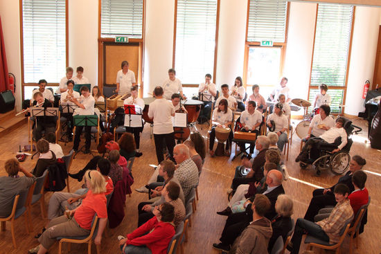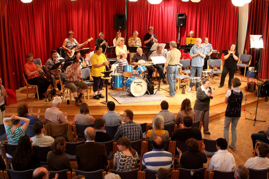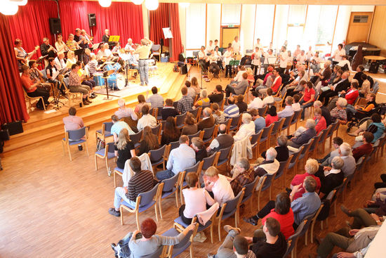 Alle haben sich auf einen gemeinsamen Tag zum Gedankenaustausch und gemeinsamen Musizieren gefreut - aber konnte man damit rechnen, dass es so gut würde? Das Eichhof-Orchester hatte am vergangenen Samstag die Leverkusener Stadtmusikanten zu Gast. Udo Seehausen, Leiter des Eichhof-Orchesters, hat vor vielen Jahren bereits mit den Stadtmusikanten zusammengearbeitet und diesen Kontakt genutzt, die Orchester zusammenzubringen. Wieviel Freude und Energie dieser Tag allen Beteiligten gebracht hat, konnte Gäste dann beim gemeinsamen Konzert am Abend erleben. So viel Spielfreude, so viel Empathie, so viel Können - innerhalb weniger Minuten hatte die gute Laune alle Konzert-Gäste angesteckt. Den ersten Teil des Konzertes bestritten die Eichhof-Musiker, den zweiten die Stadtmusikanten - um dann zu einer furiosen Großleistung anzutreten, zwei gemeinsam in den wenigen Stunden einstudierte Stücke, die die Anwesenden vor Begeisterung von den Stühlen riss.