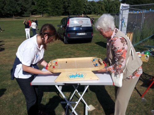 Bereits seit vielen Jahren gibt es einen guten Kontakt zwischen der Lebensgemeinschaft Eichhof und dem Lions Club Bonn, der regelmäßig mit seiner Unterstützung dem Eichhof behilflich ist. Aktuell haben Sie den Wunsch nach einer Außentischtennisplatte ermöglicht, die seit einigen Tagen zwischen Fußballplatz und Haus 9 für alle zur Verfügung steht. Aber der Kontakt beschränkt sich nicht nur auf das Spenden von Geld. Am Samstag, den 25. August veranstaltete der Lions Club Bonn ein internes Clubfest am Labyrinth in den Bonner Rheinauen. Zu diesem Fest hatten Sie eine Einladung an den Eichhof ausgesprochen. In einer sehr schönen familiären Atmosphäre und bei gutem Wetter, haben wir mit rund 40 „Eichhöflern“ den Nachmittag sehr genossen. Bei bester Versorgung fanden Begegnungen im Spiel und in Gesprächen statt, die beide sicherlich bereicherten. Das Labyrinth wurde erkundet und sorgte bei dem ein oder anderen für Verwirrung und einen längeren Spaziergang. Der Zauberer Joachim Welter zog Alt und Jung mit gekonnten Tricks in seinen Bann und auf der Wiese waren sehr unterschiedliche Speile verteilt.