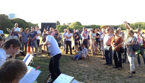 Als Gastgeschenk brachte der Eichhof sein Orchester mit, dass den Tag mit einem kleinen Konzert abrundete. Wie so oft begeisterte es die Zuschauer mit ihrer Freude am Musizieren und die vorbeigehenden Passanten zum verweilen.