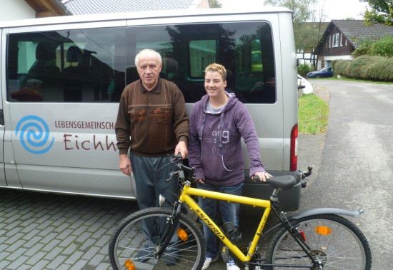 Es stellte sich heraus, dass Herr Kasten, ein rüstiger Rentner, seine freie Zeit einem guten Zweck zur Verfügung stellt. So sammelt er alte Räder, die keiner mehr haben bzw. schieben will und repariert sie, um sie anschließend zu verschenken. Auf diese Weise erhielten wir nicht nur 2 neuwertige Räder, sondern durften Herrn Kasten auch ein weiteres Rad zur Reparatur bringen. Kurze Zeit später konnten wir auch dieses wieder funktionsfähig abholen. Der nächsten gemeinsamen Fahrradtour im Betreuten Wohnen steht nun nichts mehr im Weg. Herrn Kasten sei Dank!