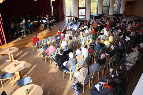 107 Teilnehmer, Eltern auch aus anderen Einrichtungen in NRW und bundesweit, Mitarbeiten und Menschen mit Assistenzbedarf füllten schnell den großen Saal im Haus der Begegnung, durch die großen Fensterfronten schien die Herbstsonne.