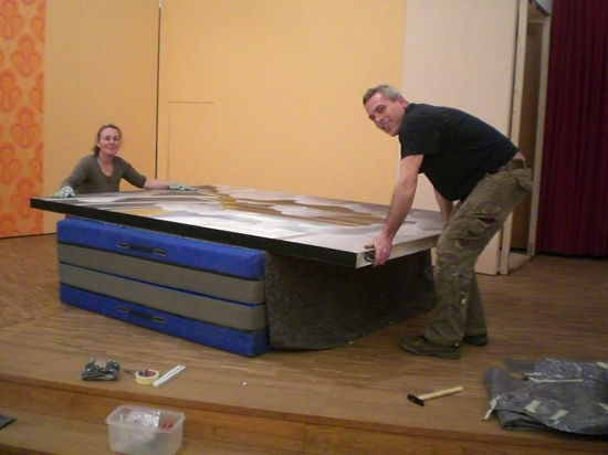 Unsere Bühnenbildner Sabine Hörschler und Stephan Rehberg beim Aufbau