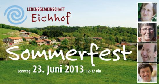 Nur noch ein Monat bis zum Sommerfest auf dem Eichhof: Am Sonntag, 23. Juni, beginnt das diesjährige Sommerfest um 12:00 Uhr mit einer feierlichen Eröffnung im Haus der Begegnung. An den diversen Programmpunkten, die im Laufe des Tages angeboten werden, wird aktuell noch kräftig gefeilt. Sobald das Programm feststeht, wird es an dieser Stelle veröffentlicht.