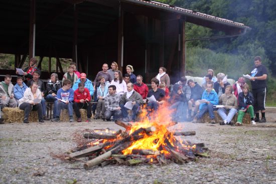 Auf dem Eichhof ist immer was los, fast immer sind Freund und Nachbarn zu den Veranstaltungen eingeladen. Manchmal aber feiert die Gemeinschaft auch für sich. Beispielsweise in einer Johanni-Feier, die Wohnbereichsleiterin Irene Börstler organisiert hatte. Auf dem Grundstück vor dem Stall hatte sie das traditionelle Feuer vorbereitet und viele Bewohnerinnen und Bewohner freuten sich, an dieser der Anthroposophie sehr bedeutsamen Feier teilhaben zu können. Frau Börstler erzählte eine Geschichte und anschließend wurden einige Lieder gesungen.