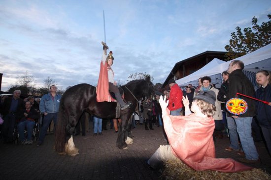 Anfang und schon erster Höhepunkte war wieder die Eröffnung des Basars durch das Eichhof-Orchester, das musikalisch die Stimmung vorgab. Nachmittags gab es einen für den Basar ungewöhnlichen Programmpunkt: Die Preisverleihung "Ausgezeichneter Ort im Land der Ideen" an das Online-Versandhaus ENTIA, das ausschließlich Produkte aus Werkstätten für Menschen mit Behinderung vertreibt, und dessen Ursprungsidee auf dem Eichhof entstand. Der Basar schlosse wieder mit dem traditionellen Lichterzug, der Sankt Martin auf dem Pferde folgte, und der auf dem Platz mit einer Versammlung rund um das Feuer endete.