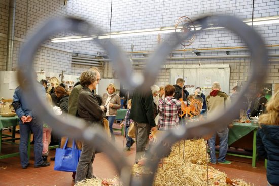Der Martinsbasar des Eichhofs als Quelle für schöne Weihnachtsgeschenke - das spricht sich in der Region immer mehr herum. Zahllose Besucher drängten sich durch die Werkstatt um wieder die liebevoll dekorierten Räume zu bestaunen, in denen sonst täglich fleißig gearbeitet wird. Nun aber konnte man sich in Ruhe all die schönen Dinge anschauen, die hier produziert werden. Und sie fanden wieder reißenden Absatz. Auch an der Essenstheke und die Caféteria tummelten sich die Besucher und genossen die leckeren Salate, Kuchen und Waffeln. Zur allgemeinen Freude war das Wetter trocken, so dass auch die Sitzgelegenheiten auf dem Platz vor dem "Haus der Begegnung" wieder gut genutzt werden konnten.