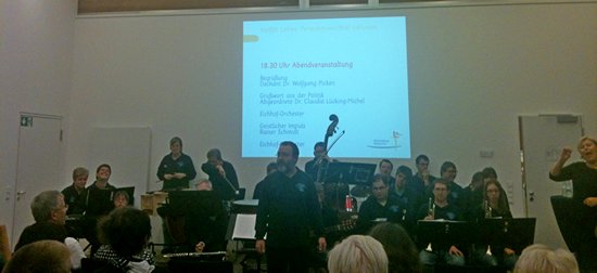 Im Rahmen des Inklusionstags am 25. September 2015 in Bad Godesberg, der von der Bürgerstiftung Rheinviertel (Bad Godesberg) und dem Berufs- und Fachverband Heilpädogogik veranstaltet wurde, trat am Abend unser Eichhof-Orchester auf.