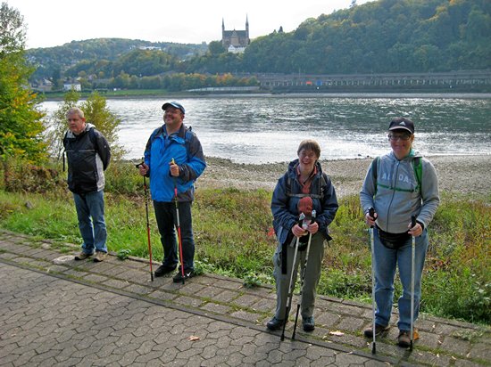 Danach ging es Anfangs steil bergab nach Erpel, wobei sich alle Wanderer mit tatkräftiger Unterstützung von Frank und mir, hervorragend gehalten haben. Die letzten Km führten uns dann am Rhein flußabwärts zurück nach Unkel. Stolz auf die Leistung ging es dann erschöpft mit dem Eichhofshuttle nach Hause.
