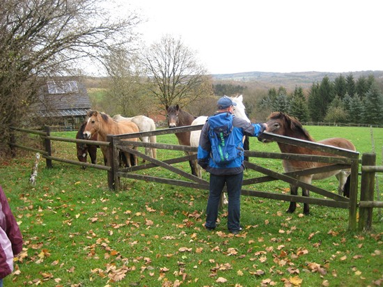 Als erfahrener Wanderscout hatte ich jedoch sofort eine Alternative bereit. Der Weg führte uns durch Bröleck, bergauf - bergab -, nach Derscheid und dann zu unserem Eichhof Rastplatz. Dort gab es von unserer Bäckermeisterin Monika köstliche Leckereien. Gestärkt und fröhlich ging es dann zurück zum Eichhof.
