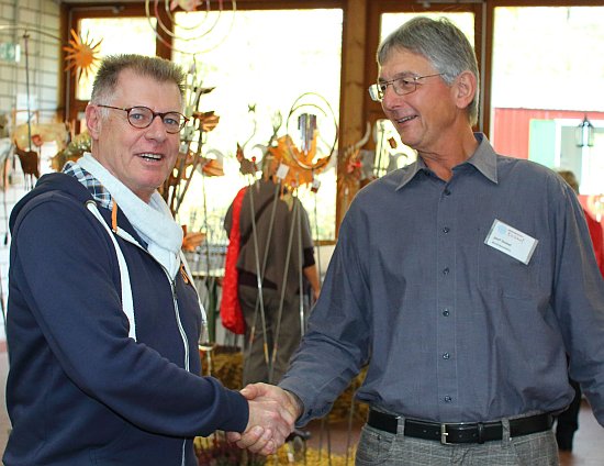 Unser Foto zeigt den Einkaufsleiter der Fa. Lemmer-Fullwood GmbH, Herrn Rudolf Güld, mit Josef Steimel, dem Leiter der Metall.Manufaktur, anlässlich unseres Martinsbasares.