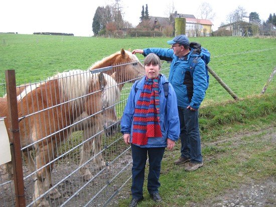 Unsere "Kleine Wandergruppe" ist das neue Wanderjahr gestartet. Ein Stück auf Mönch- und Heideweg, vorbei an der Wasseraufbereitungsanlage Siegelsknippen, insgesamt 4,5 Kilometer. Neun Wanderer und ein Hund sind diesmal mit Monika und mir auf die Tour gegangen. Der Regen hat pünktlich zu Beginn der Wanderung aufgehört und erst wieder eingesetzt, als wir alle trocken im Bus saßen. Wenn Engel wandern...