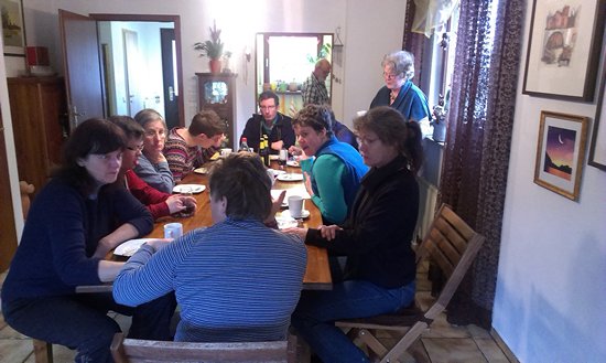 Zur Einkehr waren wir diesmal bei mir zu Hause. Dort gab es einen leckeren "Bienenstich", extra für uns von Monika gebacken und heiße Getränke. Ein runder Abschluss, wie man auf den Fotos sieht.