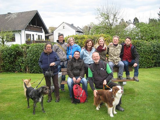 "Bei gutem Aprilwetter ging es vom Eichhof hoch nach Winterscheid, wo uns Annette Brittner zur einer leckeren Kaffeerundeeingeladen hat (hmmm lecker Bienenstich).