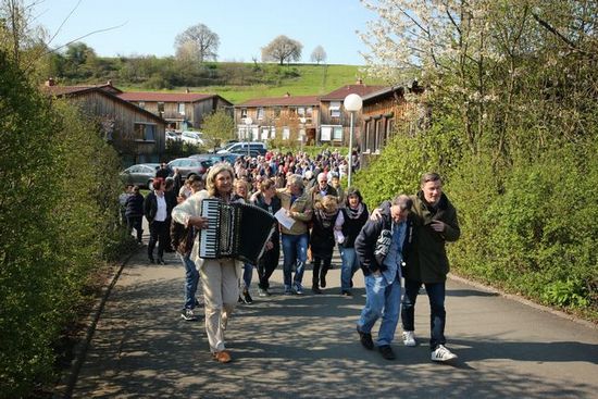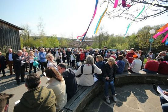Große Resonanz fand ein gemeinsames Singen von frühlingshaften Liedern rund um den mit bunten Bändern geschmückten Baum im Kreisel. Anschließend gab es ein von zahlreichen Mitarbeitern und Ehrenamtlern aufwendig vorbereitetes Essen.