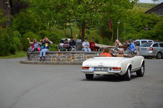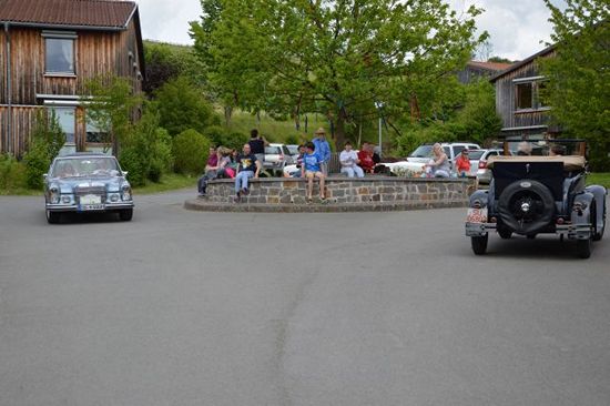 Die historische Christophorus-Fahrt der Gemeinde Ruppichteroth führte in diesem Jahr auch über den Eichhof. Beim traditionellen Auto-Korso führte die Strecke nun auf den Eichhof und in einer Ehrenrunde rund um den Kreisel, an dem sich viele Eichhof-Bewohner versammelt hatten. Sie begrüßten alle Automobilisten mit großem Hallo. Insgesamt 120 Fahrzeuge passierten das begeisterte Publikum. Ein Wagen blieb just liegen und musste vor Ort wieder in Schuss gebracht werden, was den Eichhöflern die besondere Gelegenheit bot, sich das Auto mal aus der Nähe anzuschauen.