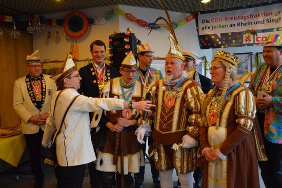 Im Kreishaus trugen sich die Tollitäten ins Gästebuch des Landrates ein und warfen sich ins Getümmel. Anschließend wurde allen Kreistagsfraktionen ein Besuch abgestattet, bevor es dann weiter zu den Lokalredaktionen der Zeitungen ging. Insgesamt ein langer Tag, aber für die kommenden Aktionen ist noch Kraft genug vorhanden.