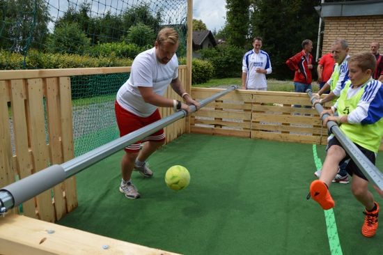 Die Akteure im Menschenkicker-Turnier des VFR Marienfeld waren die Legenden der alten Herren, der Ernteverein Röttgen, die FDP Much und der Eichhof, die sich in einem selbstgebauten Menschenkicker gegenüber standen. Die Teilnehmer dieses Turniers hatten viel Spaß beim Spiel "Jeder gegen Jeden" und die Eichhöfler konnten als Turnier-Sieger vom Platz gehen. Glückwunsch an die Kicker vom Eichhof!