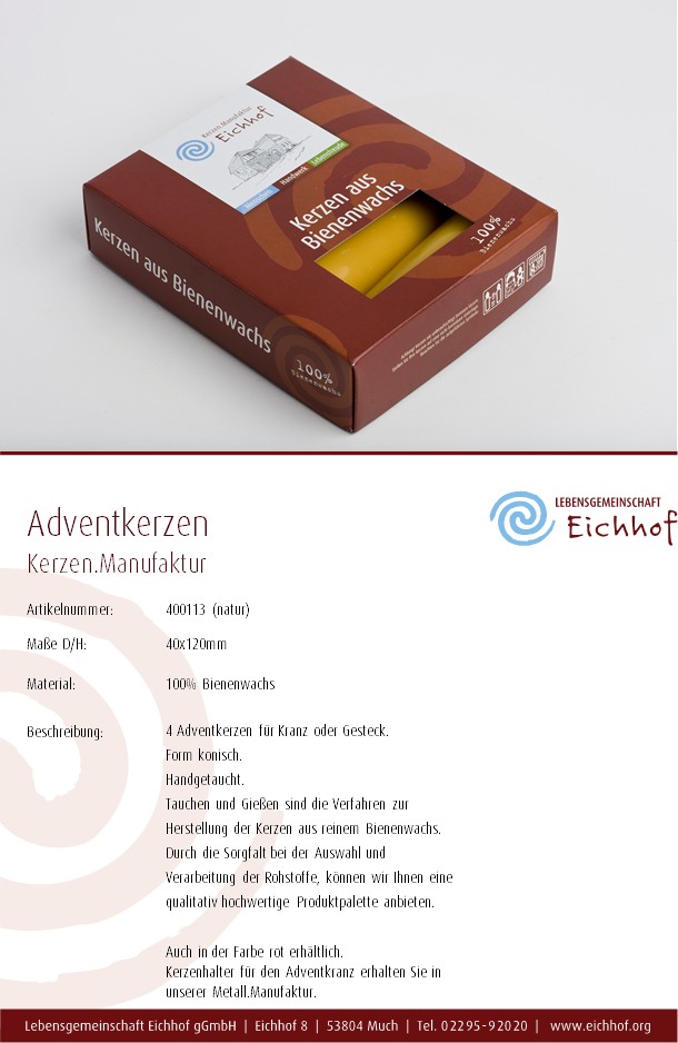 < Produkte Kerzen.Manufaktur   |  Produkte des Eichhofs
