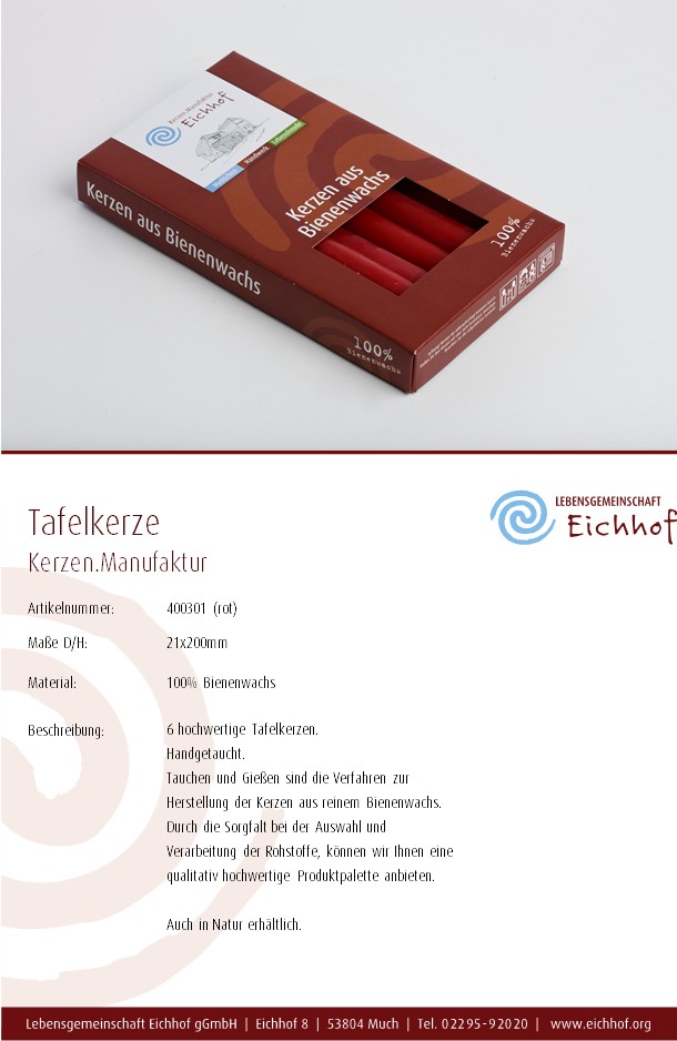 < Produkte Kerzen.Manufaktur   |  Produkte des Eichhofs