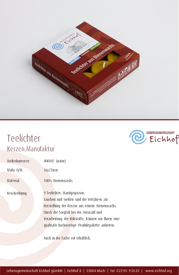 < Produkte Kerzen.Manufaktur   |  Produkte des Eichhofs
